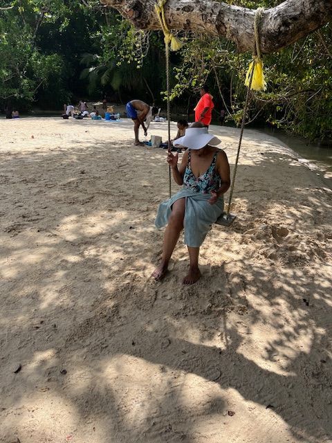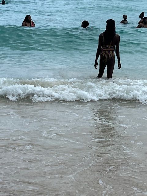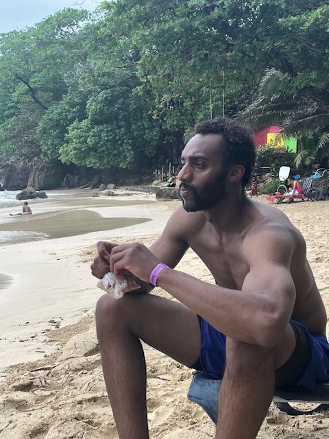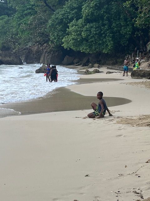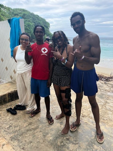 Zack, Dr. Nunley, Azizi and Jamaican lifeguard at Boston beach