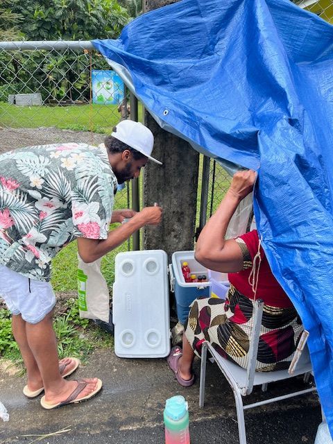 VP Dr. Lumpkins & Sec Dr. Chinue Brown comfort child stung by a bee at Black Family Day